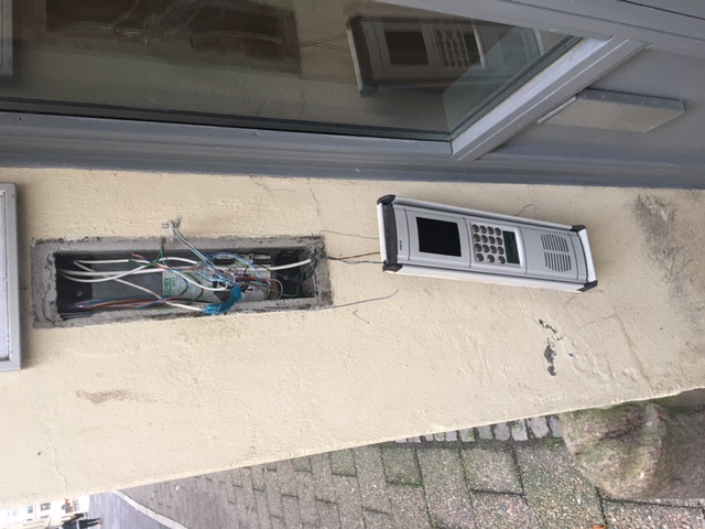 Under kvällen/natten till tisdag 29/12 blev porttelefonen vandaliserad och hängde bara i ett par kablar.